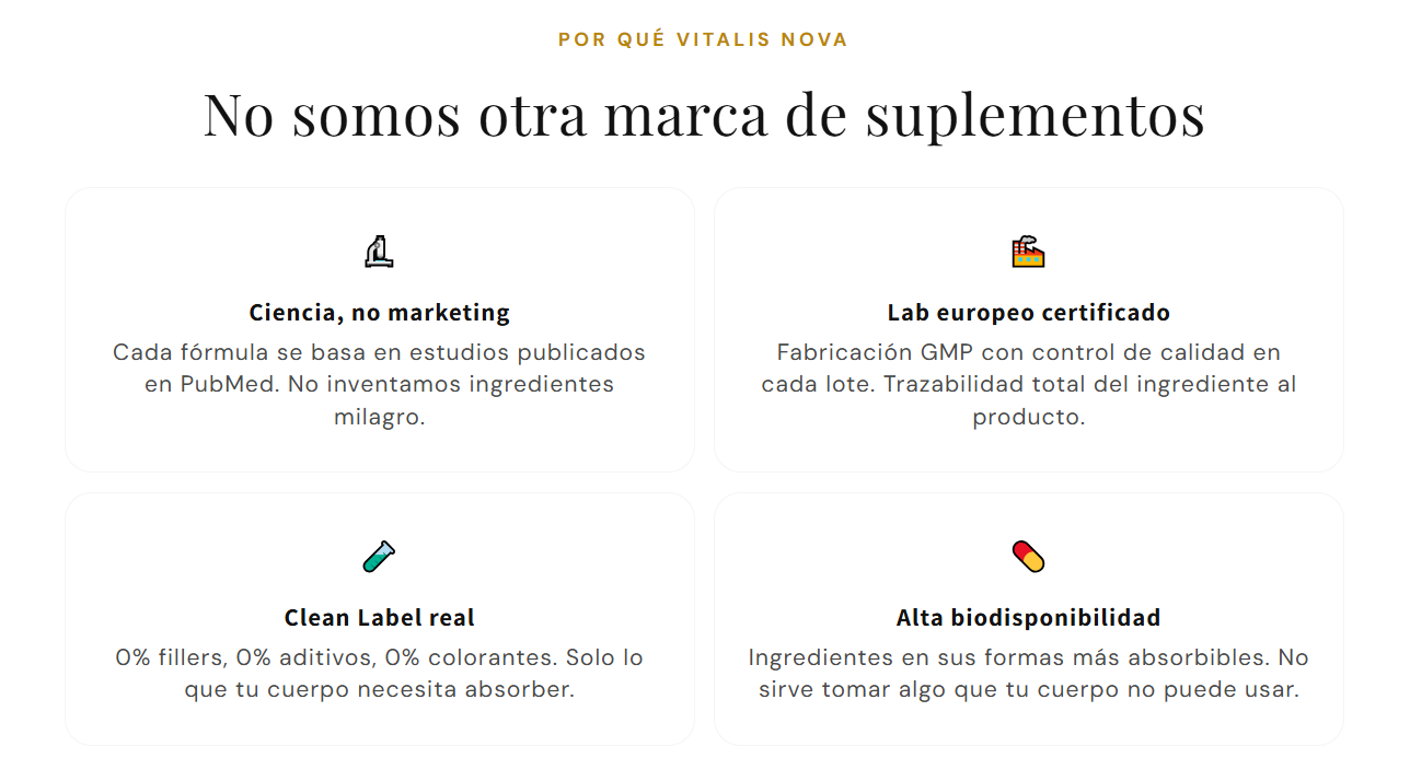 Solo ingredientes con evidencia científica, en sus formas más biodisponibles. Proveedores certificados.